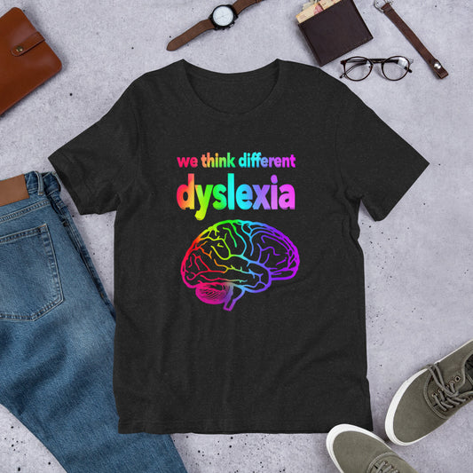 Unisex we think different dyslexia faded colours t-shirt